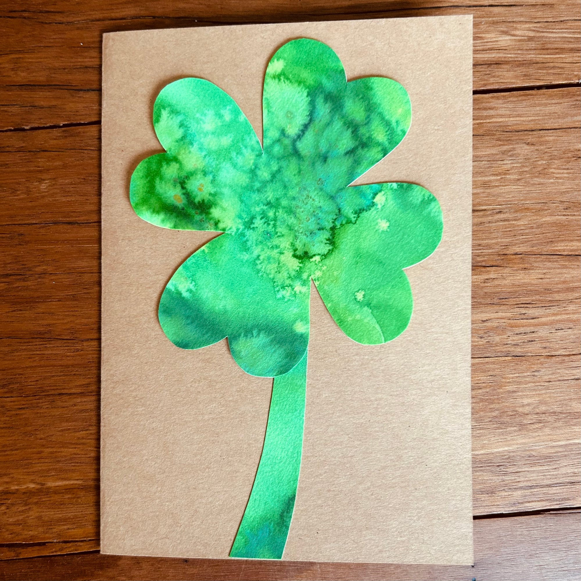 Our beautiful 4-leafed CLOVER CARDS are made from water and/or ink coloured paper in beautiful green patterns. Every card is individually produced and completely unique. The leaves bend up to make this card truly tactile.